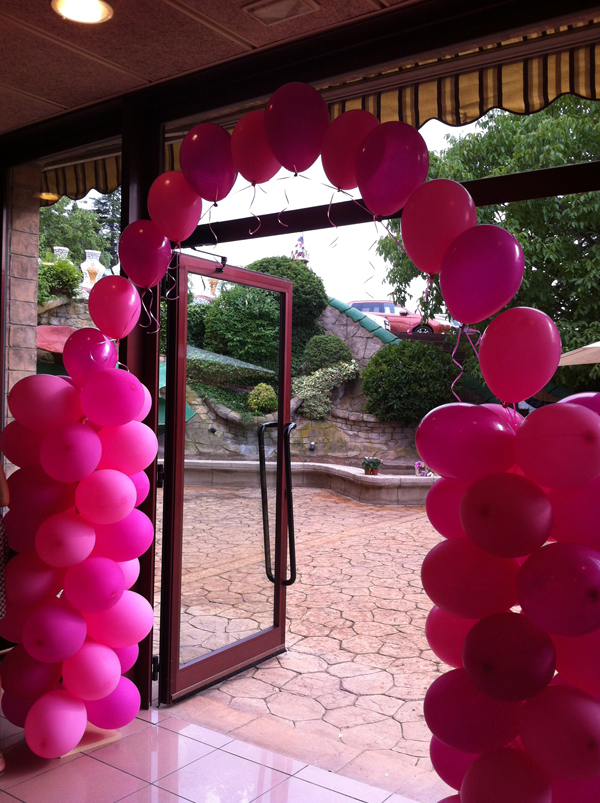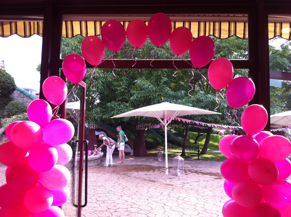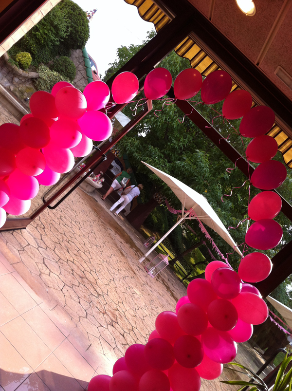 Per accedir-hi havies de travessar un arc de globus de color rosa i fucsia.